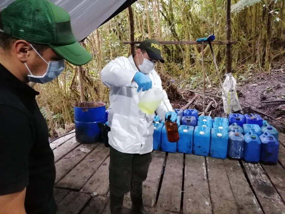 SIJIN e Inteligencia, ubicaron y posteriormente destruyeron un laboratorio para el procesamiento de clorhidrato de cocaína, en la vereda El Bosque del