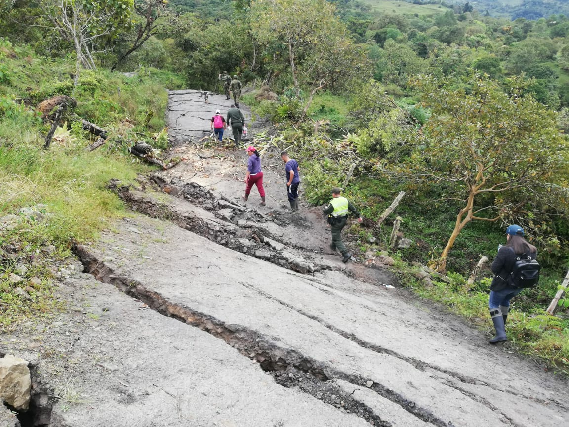 El Departamento de Policía Boyacá acompaña la evacuación de más de 15 familias debido al agrietamiento de tierra en las veredas Cardozo y Villanueva y que probablemente continuara extendiéndose a otras veredas.