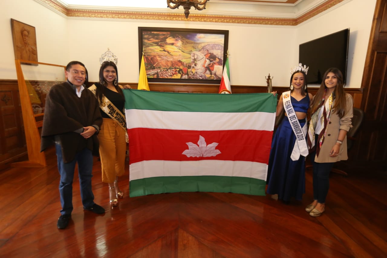 l gobernador de Boyacá, Carlos Amaya, en compañía de la primera dama, Daniela Assis, hizo entrega de la bandera del departamento en reconocimiento a las reinas Nacional del Bambuco, Tania Alejandra Rodríguez Cachaya e Internacional del Joropo, Lendy Tatiana Tovar Marín, por representar al departamento en los certámenes Nacionales.