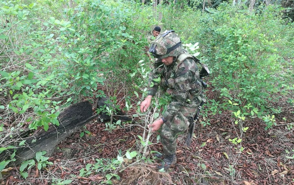 En el lugar también fue localizada dos plantaciones de coca, un semillero y sustancias para el procesamiento de la hoja de coca.