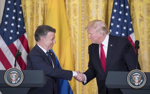 El presidente estadounidense, Donald Trump, recibió este jueves en la Casa Blanca al presidente Juan Manuel Santos, en un encuentro que versó sobre la guerra contra las drogas, el proceso de paz y la mutua preocupación por la crisis en Venezuela.