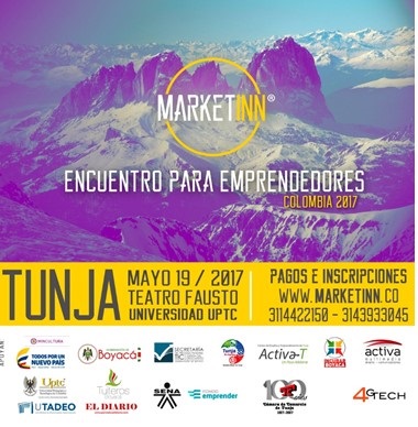 con el apoyo de la Gobernación de Boyacá, UPTC y Cámara de Comercio de Tunja, presentarán el próximo viernes 19 de mayo, en el Teatro Fausto de la UPTC en Tunja, el evento más importante de emprendedores que se haya realizado en esta ciudad capital. ‘El propósito es consolidar espacios de interacción social donde estudiantes profesionales, empresarios, ejecutivos e inversionistas, conozcan, aprendan y vivan una experiencia real acerca del emprendimiento’, asegura Jairo Rodríguez, director de MarketINN.