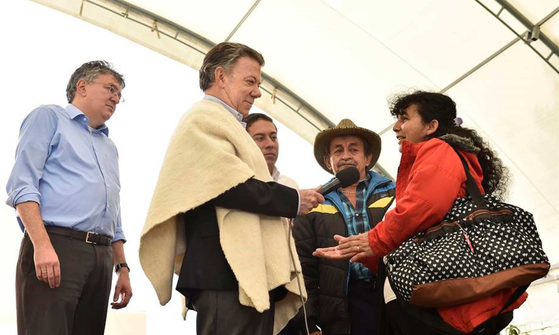 Durante la entrega de viviendas a damnificados por la ola invernal de 2010, este martes en la ciudad boyacense de Chiquinquirá, el Presidente Juan Manuel Santos afirmó que el proceso de traslado e ingreso de integrantes de las Farc a las zonas veredales es “una noticia extraordinaria que estamos viviendo y el mundo entero así lo está viendo”.