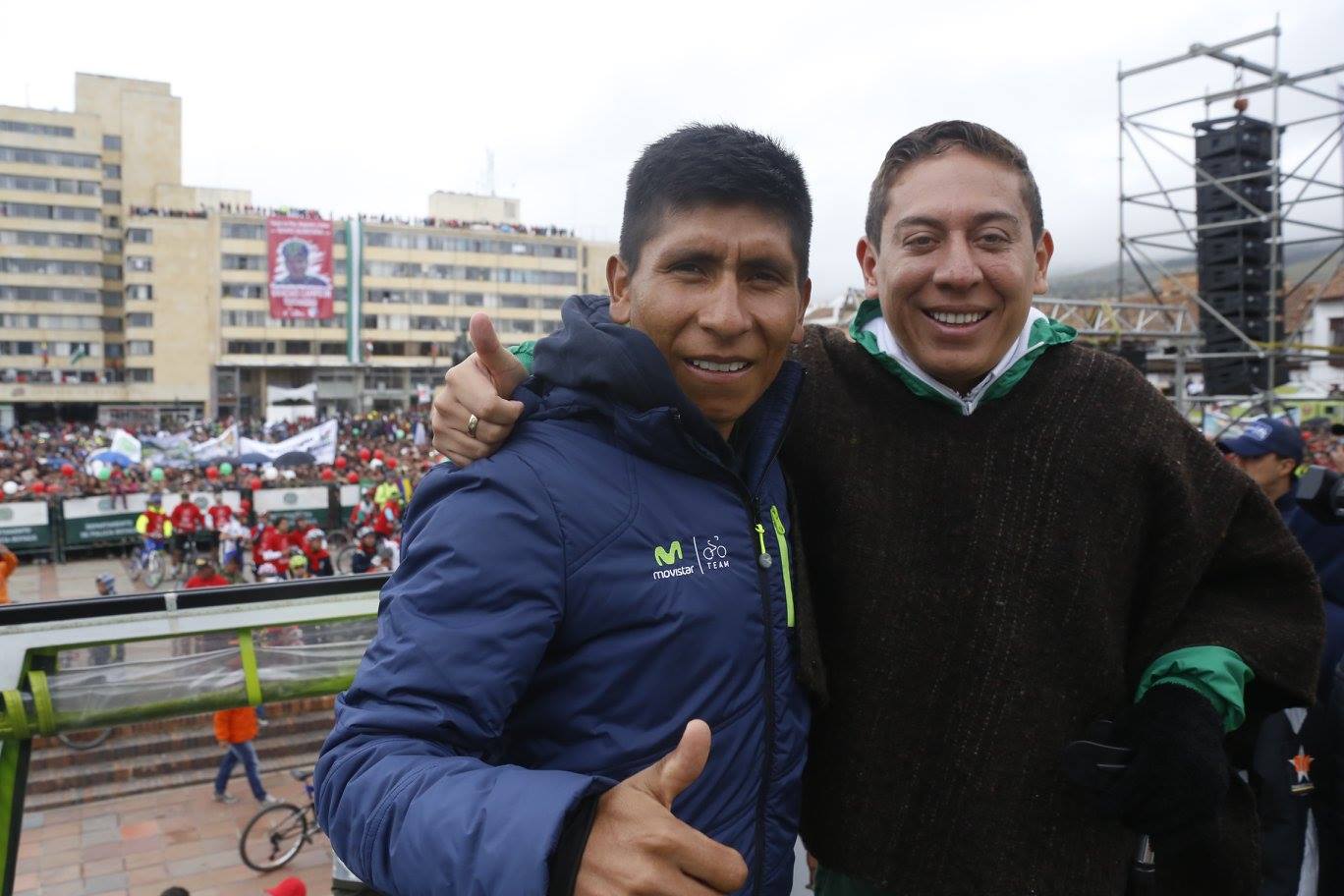 “Es emocionante ver a tanta gente en bicicleta. Ahora la felicidad es para mí”, expresó el ciclista de Cómbita, Boyacá, al inicio del recorrido que lo llevó en compañía de su esposa y sus seguidores hasta la Plaza de Bolívar.