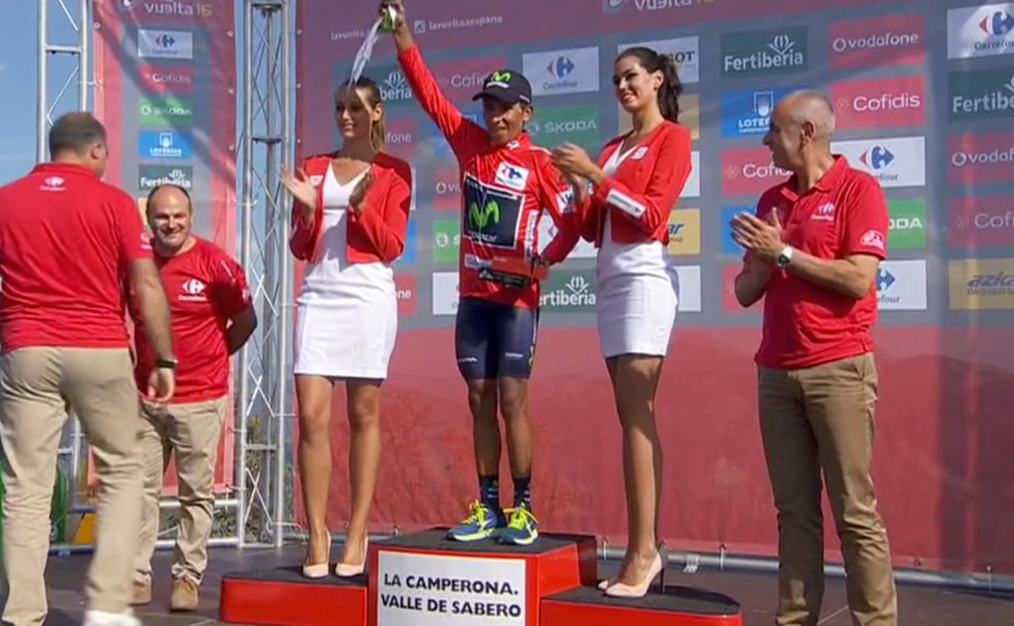 El colombiano Nairo Quintana (Movistar) se enfundó el maillot rojo de la Vuelta en la cima leonesa de La Camperona, tras un ascenso en el que mostró su mejor versión para imponerse al resto de favoritos, en una jornada cuyo triunfo de etapa lo firmó el ruso Sergey Lagutin (Katusha).