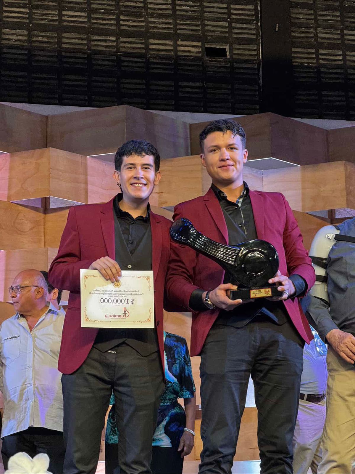 El dúo ´Los Príncipes de Duitama´, conformado por los músicos Cristian Ochoa Palomino y Juan Sebastián Galeano, se alzó con los más altos honores en la reciente edición del Festival Mono Núñez al obtener el Premio Mono Núñez en la Modalidad Instrumental, así como el reconocimiento a Mejor Tiplista del Festival.