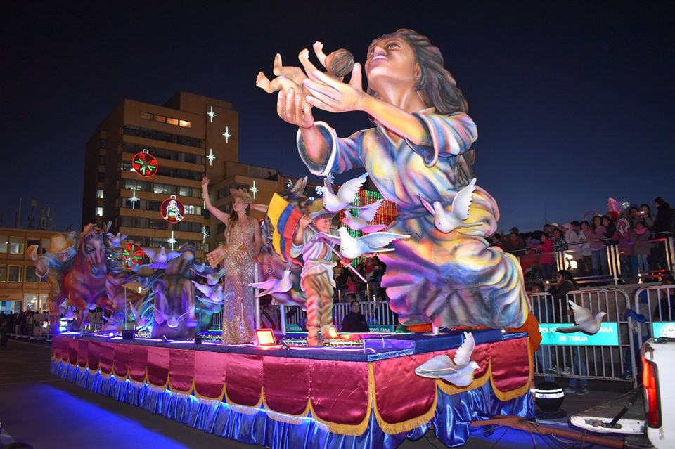 Dando continuidad a la programación de la versión sexagésima cuarta del Aguinaldo Boyacense, la administración municipal presentó a propios y visitantes el primer desfile de carrozas y comparsas que partió de la carrera 9 con calle 12, recorrió calles del centro de la ciudad y finalizó en la Plazoleta Muisca, conocida como Plazoleta de las Nieves.
