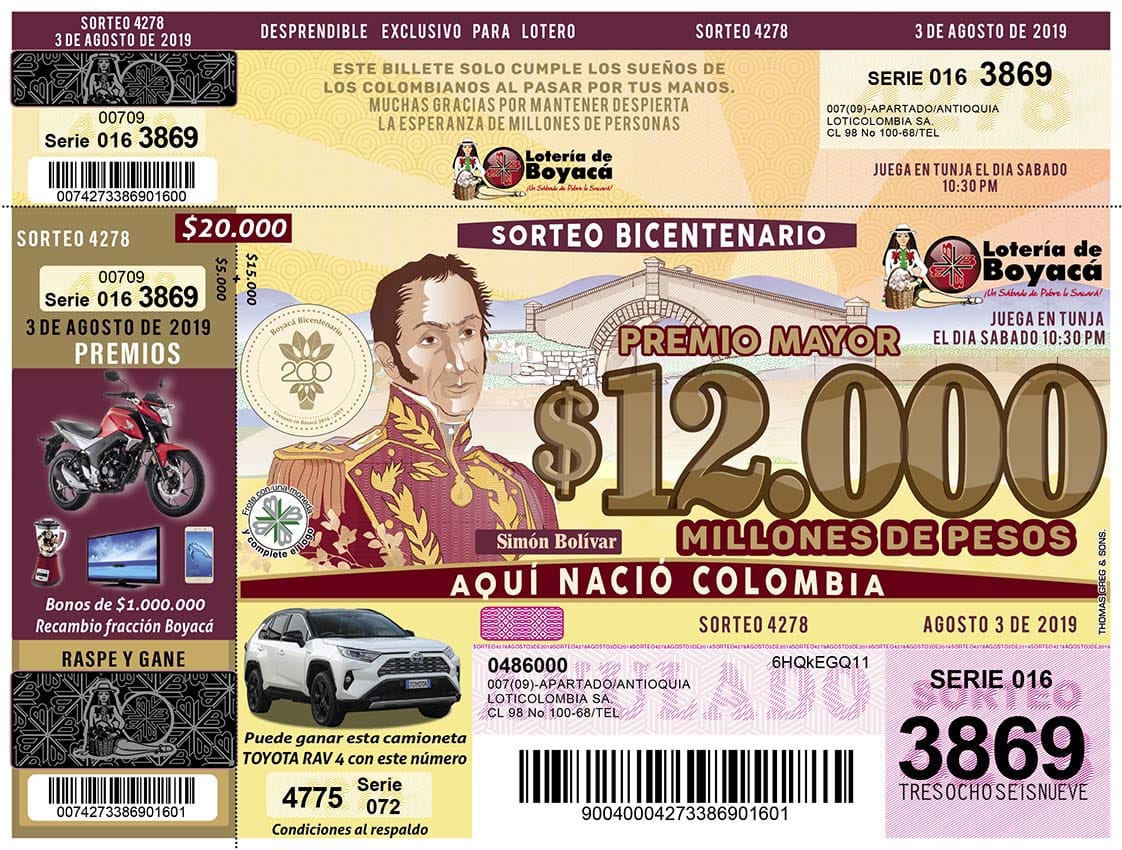 Con un nuevo billete unifraccional que trae un completo y atractivo plan de premios, la Lotería boyacense continúa conmemorando los 200 años de la Campaña Libertadora.